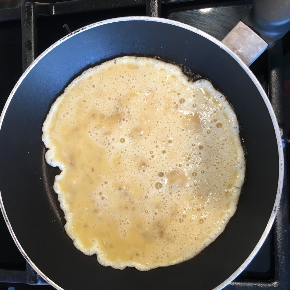 Colocar um pouco de óleo de côco numa frigideira anti-aderente e colocar a massa. Baixar o lume para não queimar e deixar que cozinhe bem antes de virar ou pode desmanchar-se.