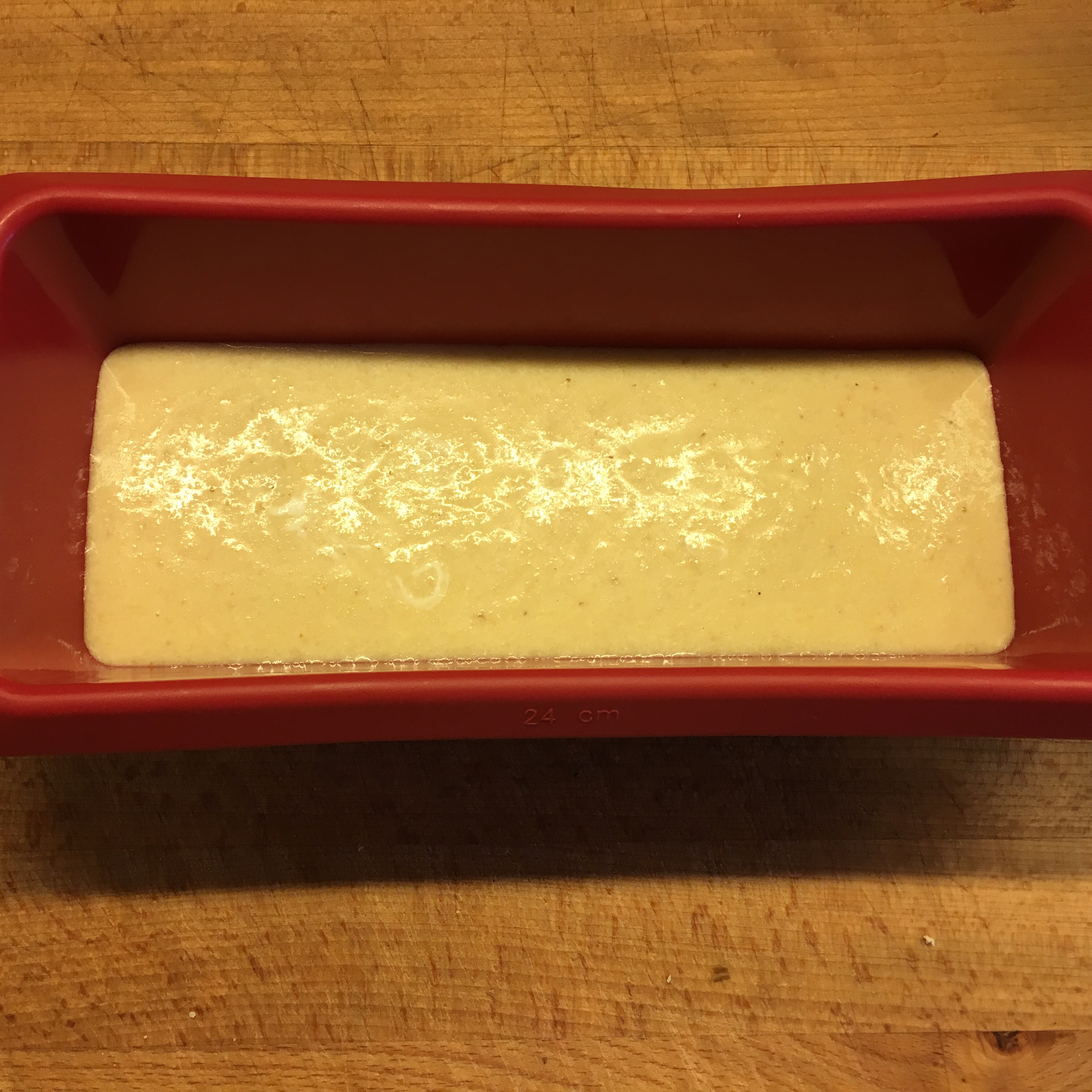Colocar numa forma de silicone. Para esta quantidade uso a forma de bolo inglês.