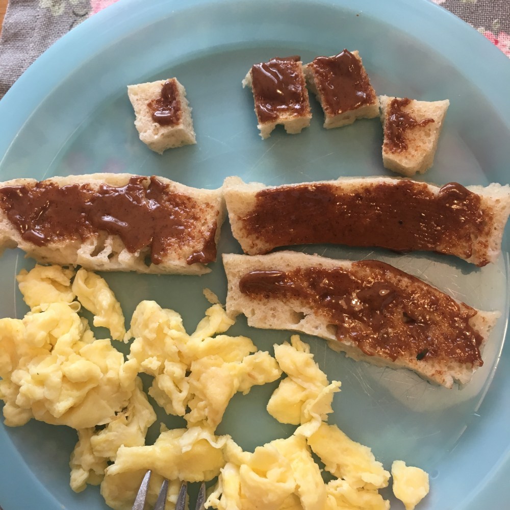 Big M comeu umas fatias com manteiga de amêndoa.