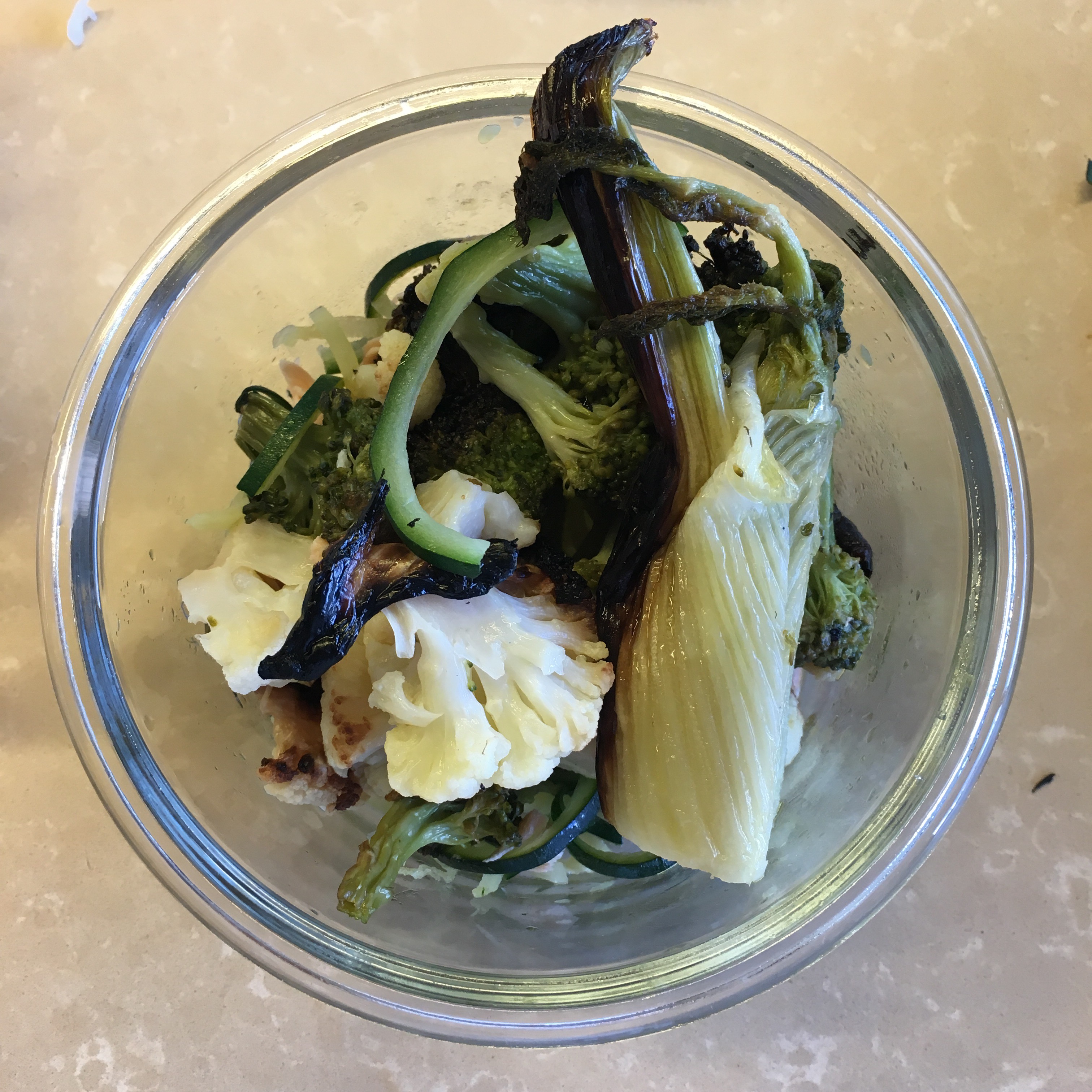- Restos de legumes cozinhados ou não (usei brócolos, couve flor, curgete, funcho)