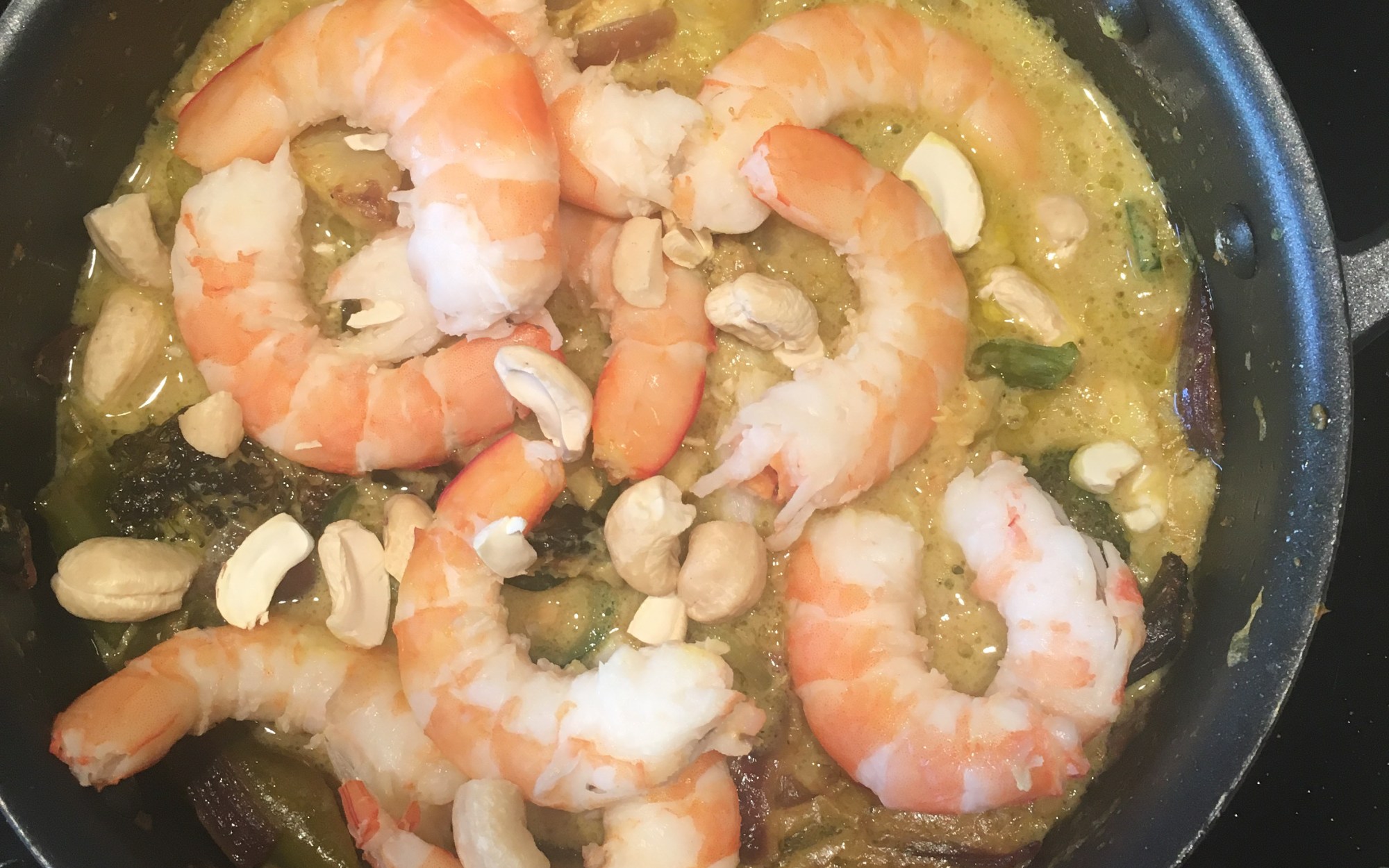 No final juntar os legumes, o peixe e o camarão e servir acompanhado com curgete esperilizada ou arroz integral basmati e uns cajus.