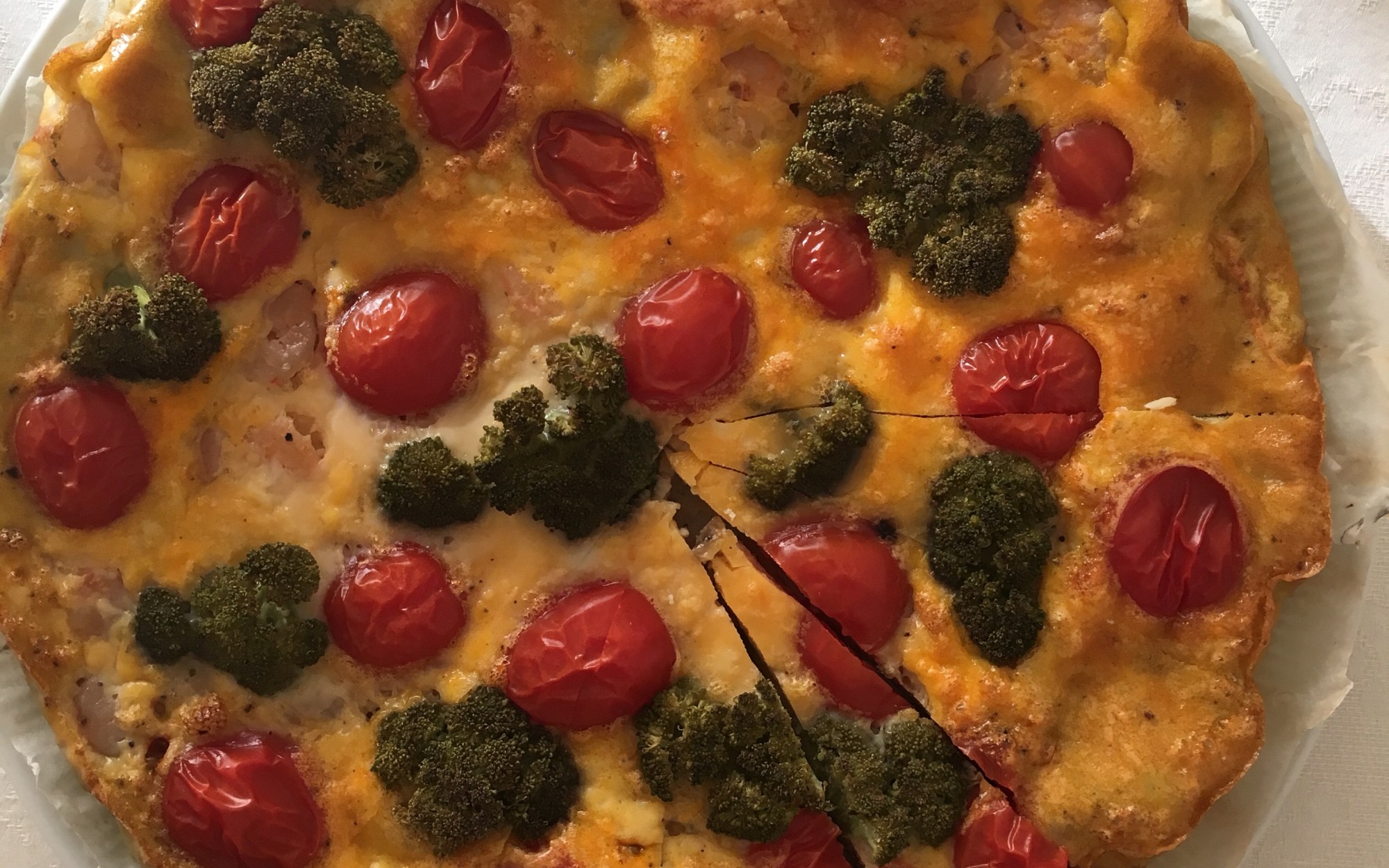Resolvi então fazer uma versão de quiche. Mas sem massa. Vista de fora nem se percebia.