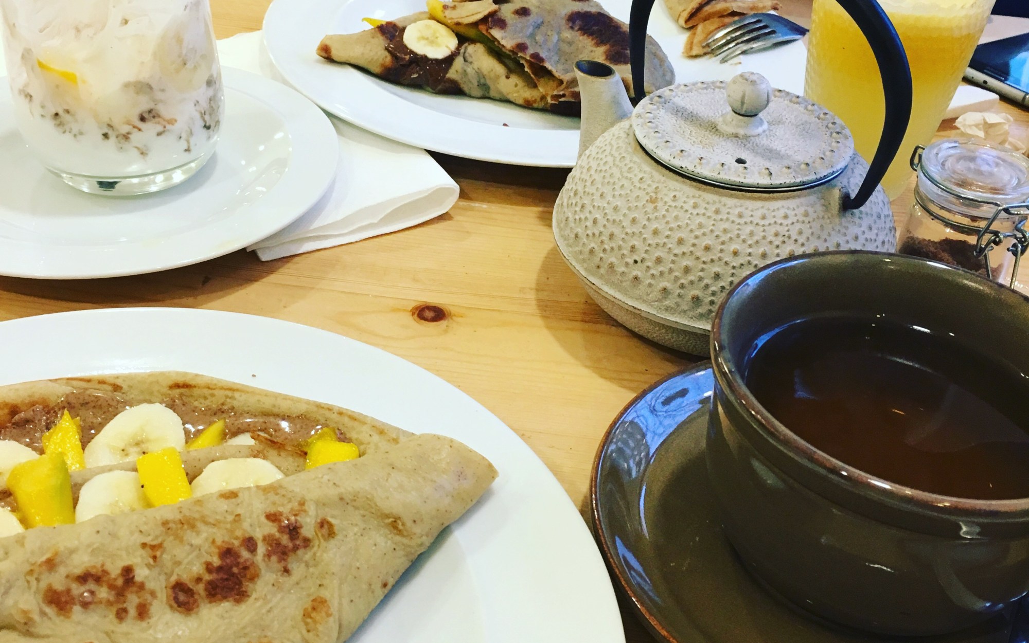Eu e o Babe comemos literalmente um banquete de crepes com fruta (um com manteiga de cacau e avelã outro com manteiga de amêndoa). Continuam deliciosos como da primeira vez. E muito bem servidos. O desafio de final de tarde foi arranjar espaço para o jantar…