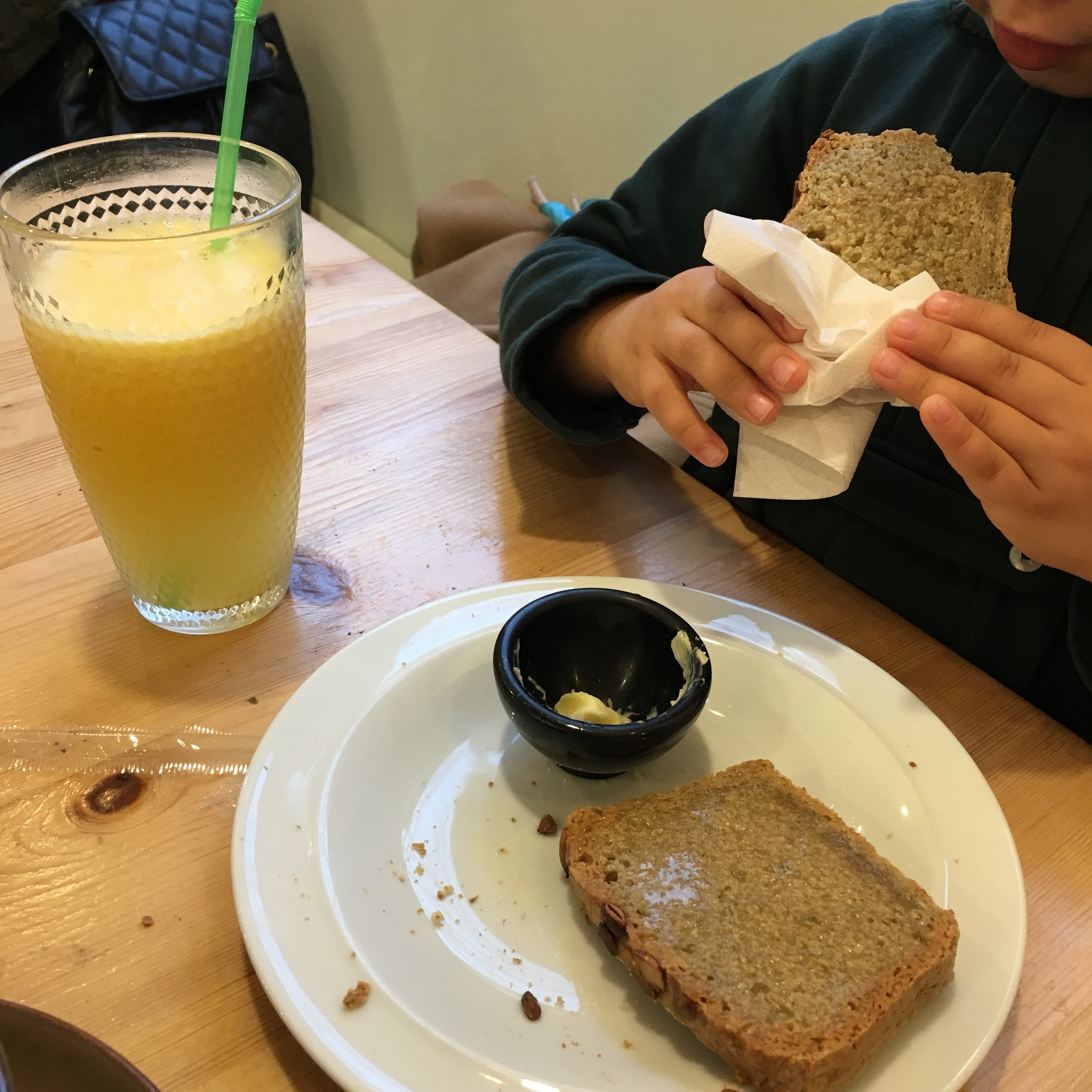 Como já falei noutros posts, apesar de todos os esforços a big M nos salgados adora muitas das coisas que não são bem o que eu gostava que ela comesse. E pede. Para lanchar o seu preferido é a clássica torrada com sumo de laranja… umas vezes cedemos outras não e fugimos de lugares que tenham torradas à vista.