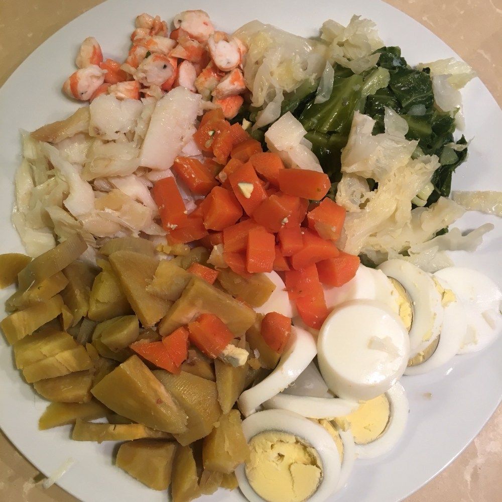 Mas como nem tudo pode ser como eu quero (apesar de fazer sempre muita força para o ser), no dia 24 lá servimos o belo do bacalhau com batata (da doce e da inglesa, para dar para todos os gostos), a cenoura, a couve portuguesa e o ovo cozido.
