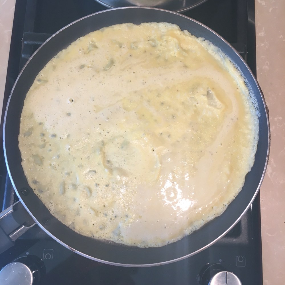 Esperar uns 30seg/até ter consistência de cozinhado e virar com uma espátula.