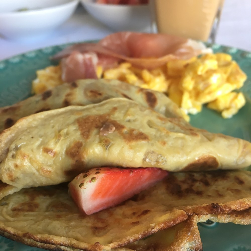 Cada um coloca o recheio que quer e a massa fina é super saborosa. Tenho ideia que virou parte do pequeno almoço de domingo. Quase que em modo tradição!
