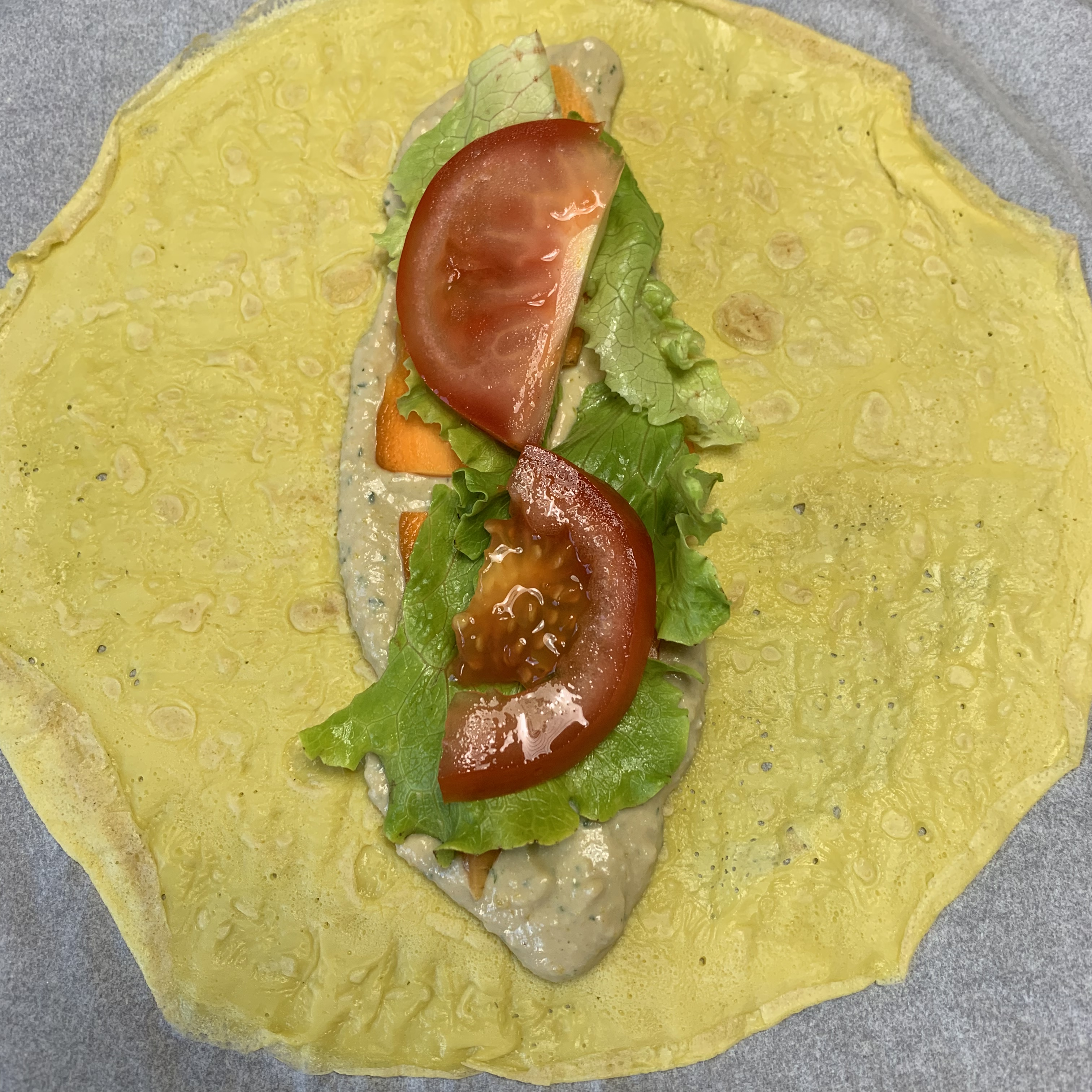 Utar uma frigideira ou uma crepeira com óleo de côco e colocar uma concha de massa (a quantidade vai variar pela dimensão da crepeira e a espessura da massa. Assumam as primeiras tentativas como testes).