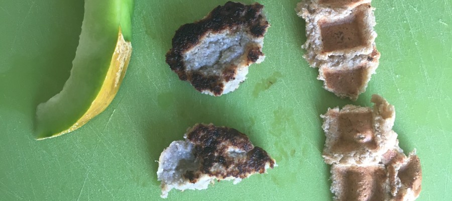 No mesmo dia em que fiz estes waffles para nós, tentei fazer uns para a baby M sem ovo… mas não correu muito bem… a massa ficou demasiado seca e colocou.